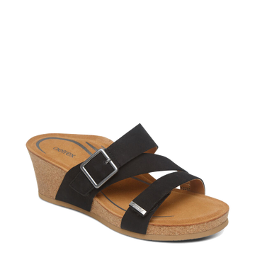 Aetrex's Kimmy. Something easy and fun to slip into. Fashion wedges meet comfort and support. Have you found your perfect wedge? These genuine leather wedges are contoured with an arch support and then layered with memory foam for a softer step. Walk comfortably in fashion, where you no longer have to compromise your feet and health. With such great support and comfort, you'll forget you're wearing wedges.