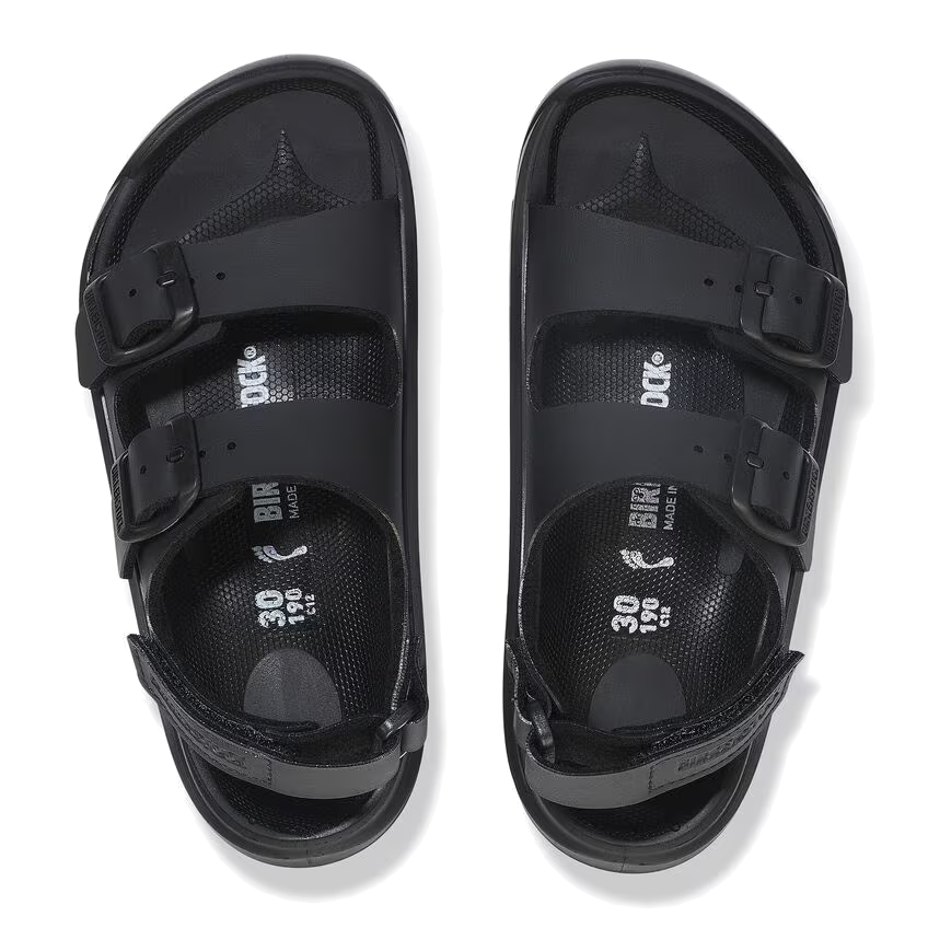 The Kids Mogami is a water-friendly with an ultra durable outer sole design from Birkenstock. Parent preferred back-strap design Mogami's is great for around water, beach or pool. This sandal is made with a synthetic waterproof upper and a lightweight durable sole that comes with a hook-and-loop backstrap enclosure for easy on and off wear.