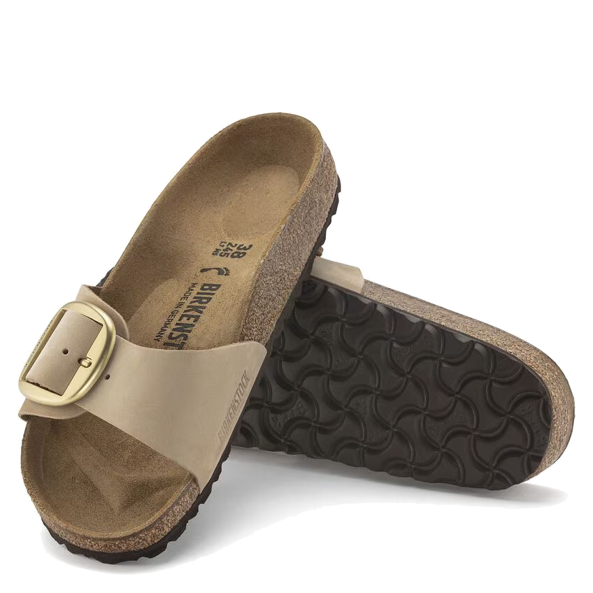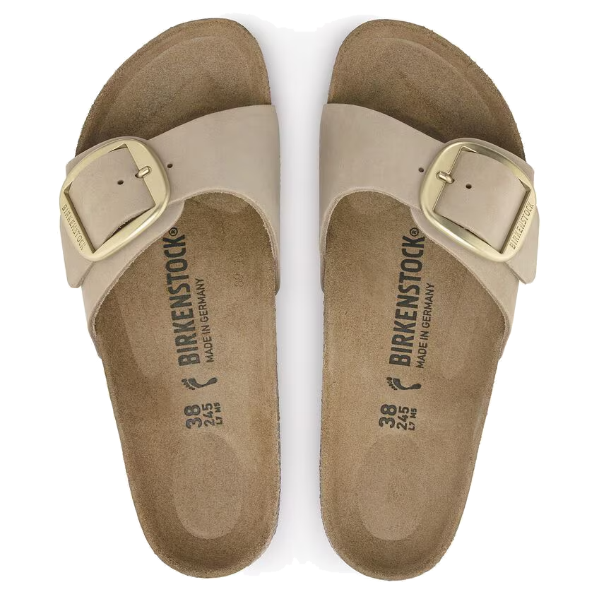 First introduced in 1963, the Madrid sandal quickly became a classic with its minimalist single-strap design. This season, it’s updated with soft nubuck leather and a standout oversized gold matte buckle, making a bold fashion statement. Plus, the sandal retains the comfort of the original BIRKENSTOCK footbed, designed to keep your feet feeling great all day long.