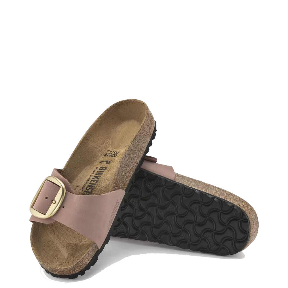 This Birkenstock Madrid is embellished with an amplified buckle. Contoured with their signature Birkenstock footbed, this single strap sandal is a minimalist style offering Birkenstock's classic support.