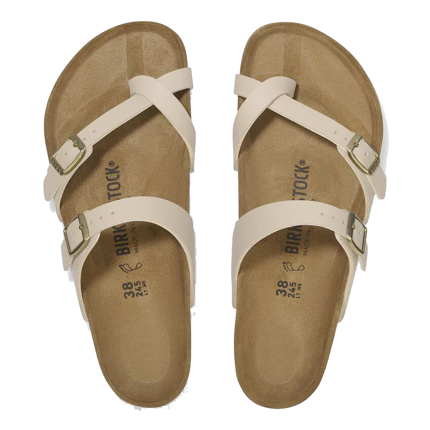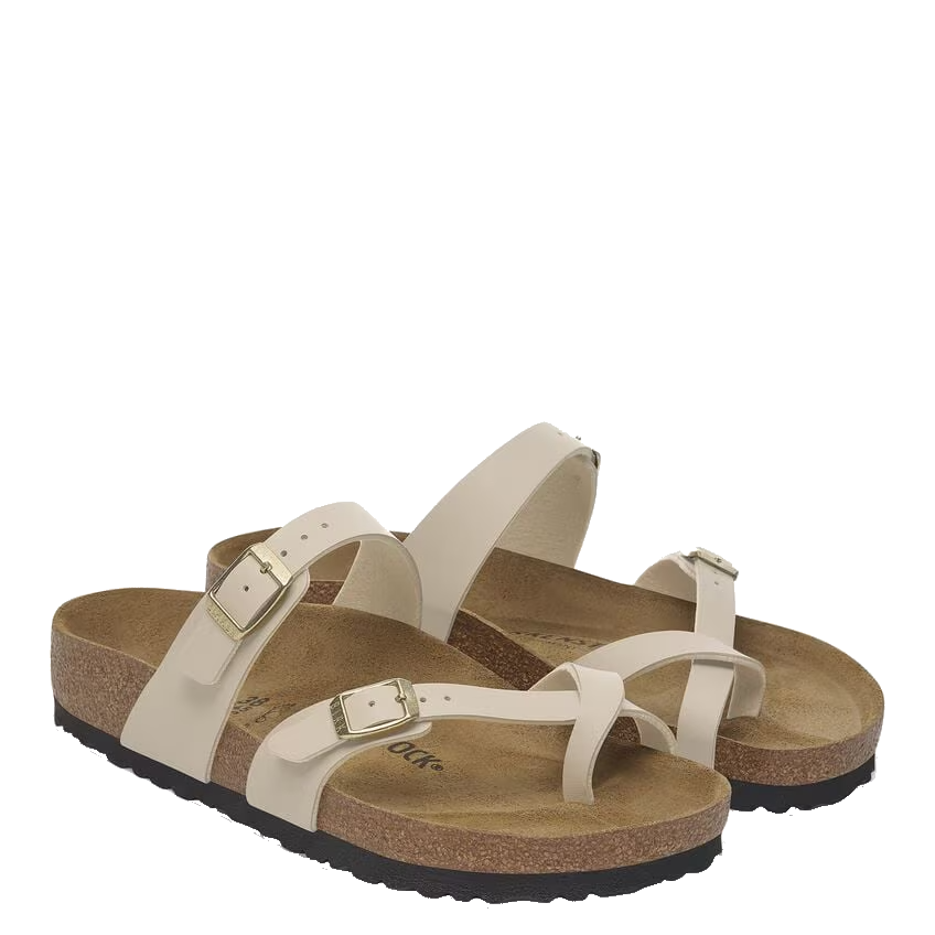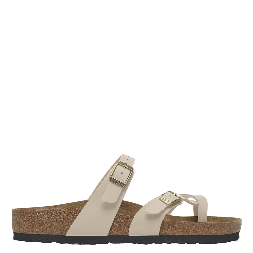This Birkenstock Mayari thong sandal with a toe loop is a timeless comfort fashion sandal that continues to provide your feet with support. With adjustable straps and an amazing cork footbed, this classic sandal conforms to the shape of your foot.