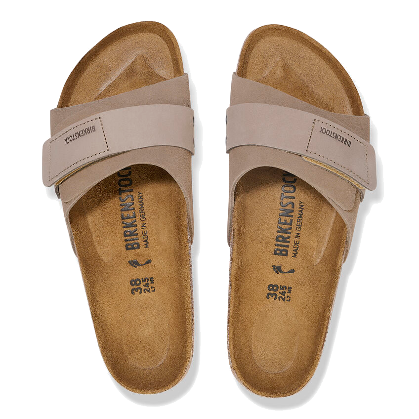 Birkenstock's Oita brings a new fresh look with all the soft upper features with its luxurious suede. Simplistic in style, this sandal is pairable with any outfit with the support you'll love. The adjustable strap is a hook and loop closer for an easy adjustment for a looser or tighter fit (see photo for details)