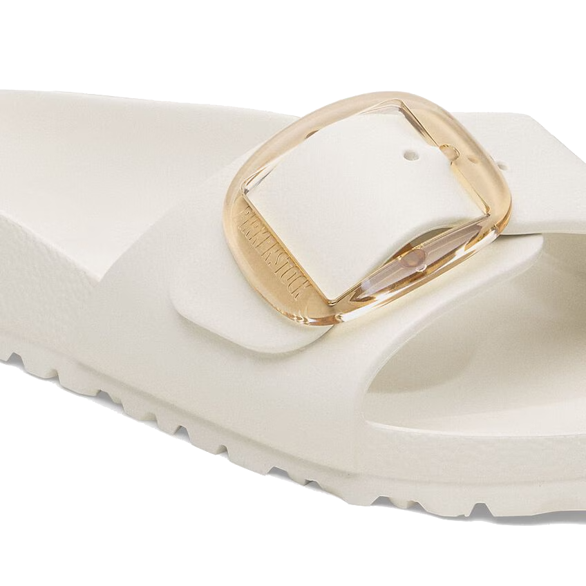 The Madrid EVA Big Buckle is a water-friendly, and lightweight twist, on the classic Madrid sandal. The single strap includes a big translucent pin buckle. creating a casual look, with a customizable fit. The sandal is constructed entirely from EVA (ethylene vinyl acetate), a high-quality, elastic material known for its excellent cushioning and flexibility. This is the perfect sandal for lounging at the pool or even a beach trip.