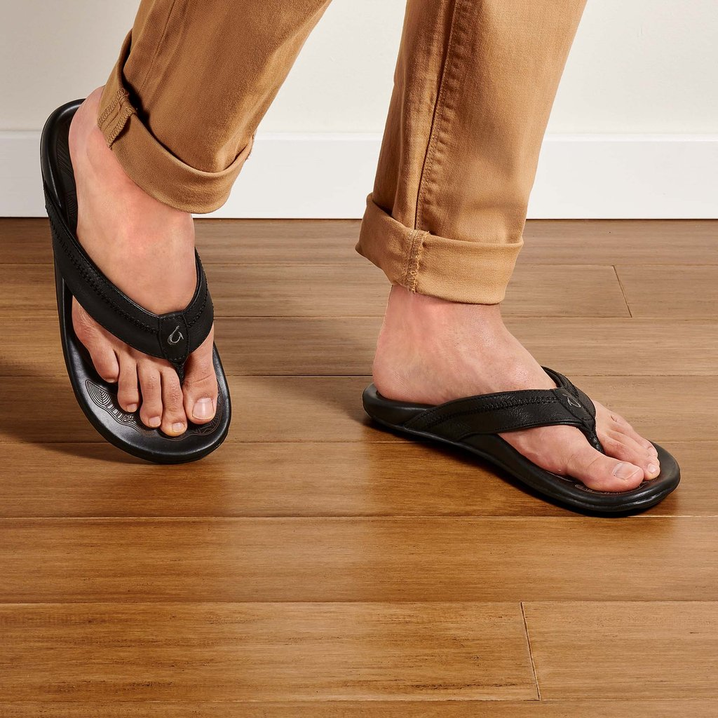 Looking for a comfortable dress casual flip? It's constructed with naturally tumbled or marbled full-grain leather using hand-sewn traditional whipstitching, complete with Polynesian tattoo artwork details on the footbed. The molded footbed gives a more luxurious comfortable feel with a slight to moderate arch. Made for your everyday comfortable casual outings. This is not a swim sandal—prolonged contact with water may cause damage.
