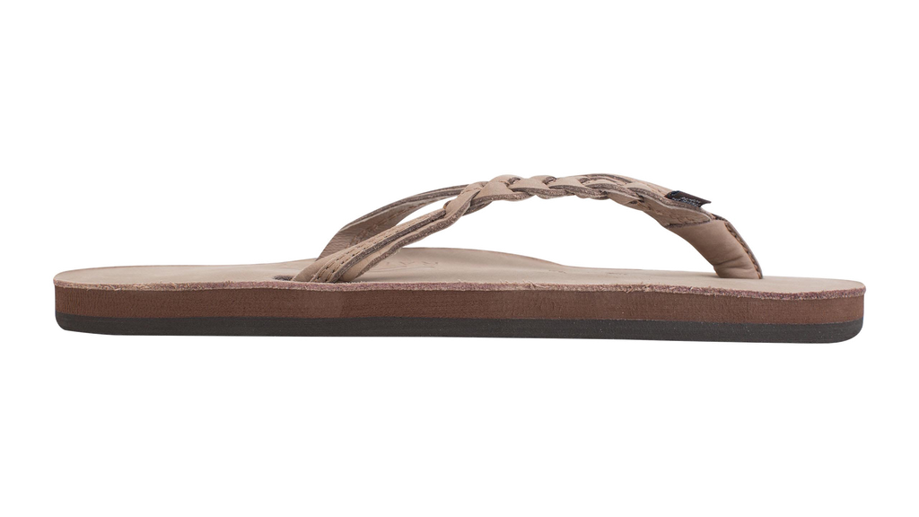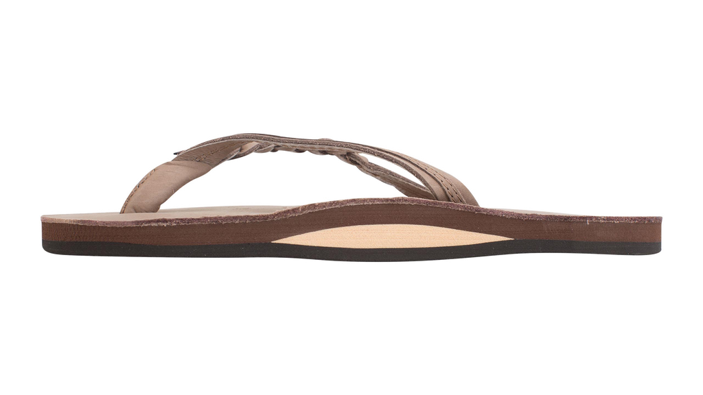 One of our most popular Rainbow Sandal styles is the Flirty Braidy. This braided strap flip has a single layer midsole with arch support, which sits on a non-slip Rainbow® bottom.