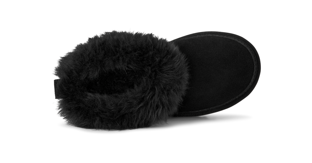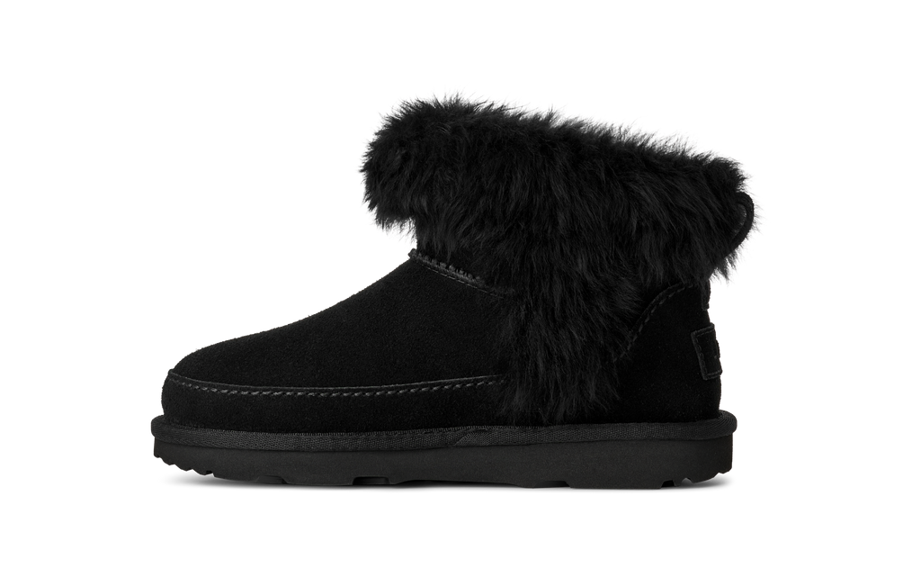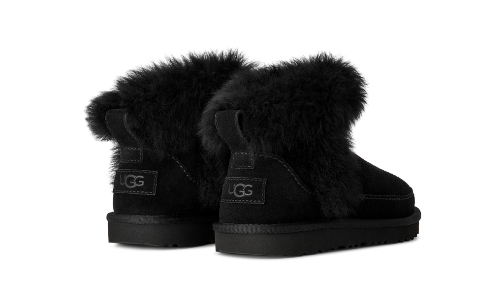 It keeps the same low shaft kids adore for easy on-and-off, but adds a touch of mountain-town charm with its fluffy sheepskin trim. Rich suede sits on a lightweight sugarcane EVA outsole, while our soft UGGplush™ lining keeps little toes warm and snug. Pair with the matching women’s style for the sweetest mommy-and-me look.