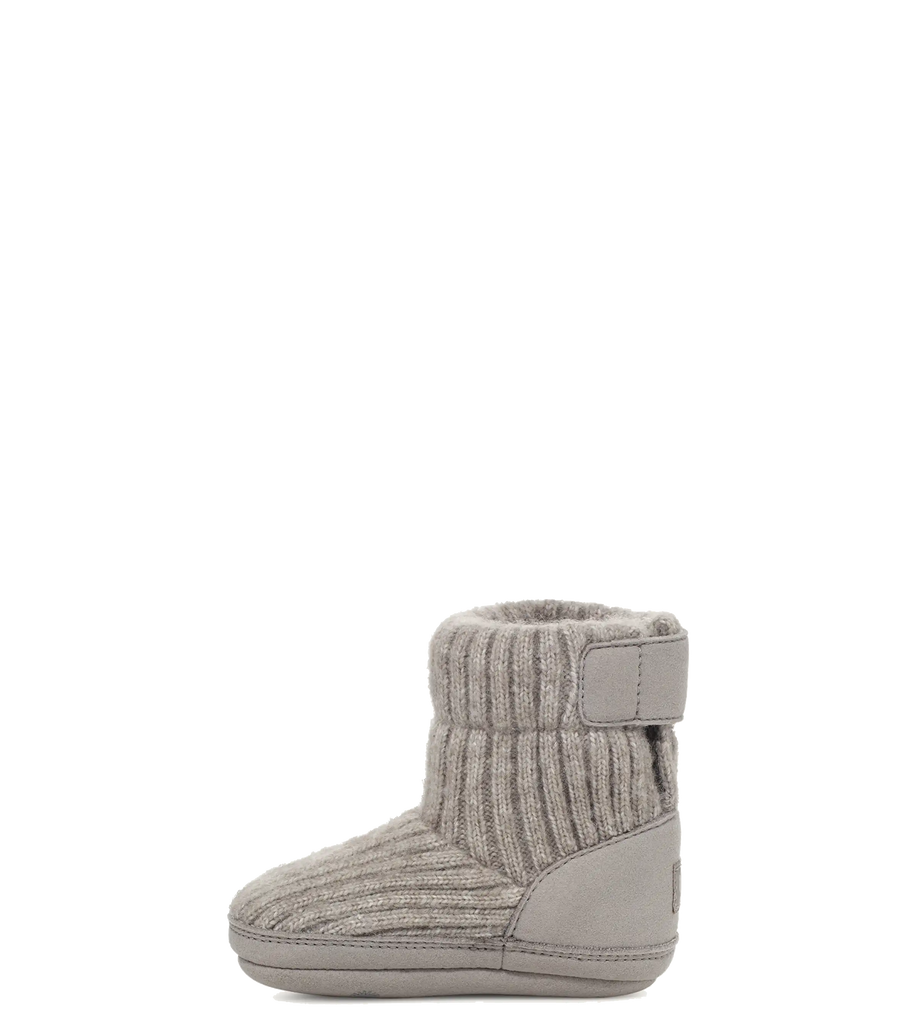 The perfect slipper bootie for sweater weather, the snuggly Skylar features a rib knit upper with a hook-and-loop closure, making it easy to take on and off. The inside is finished with 100% recycled polyester, which has been treated to be anti-odor. The microfiber outsole features a slip-resistant rubber print.