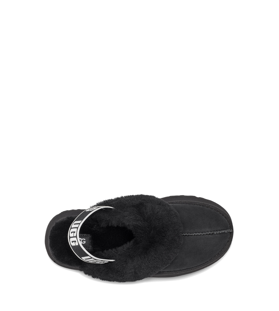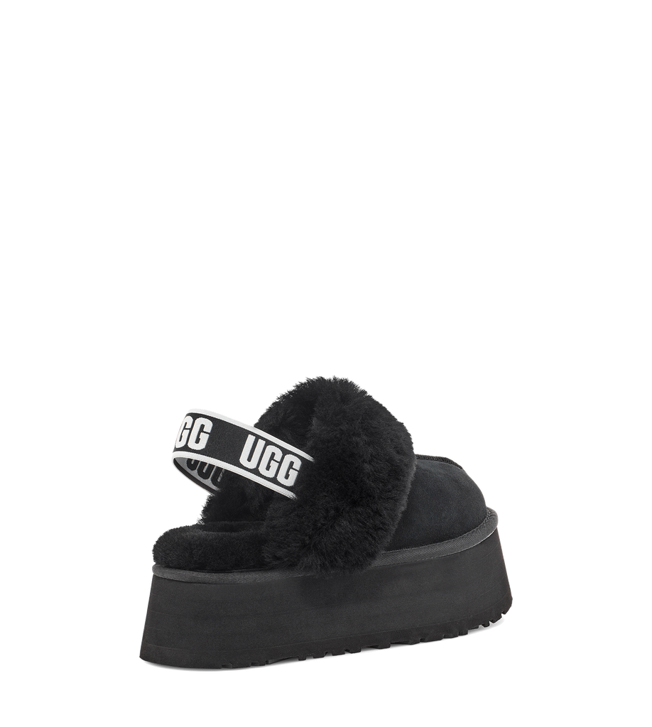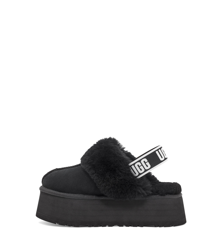 Fun, cozy, fluffy back-straps! The Funkette gives a new turn on an UGG clog, as it combines fluffy softness with a platform cushion. For outdoor or indoor wear, these soles are surprisingly lightweight. Don't let these get away as these are a limited edition.