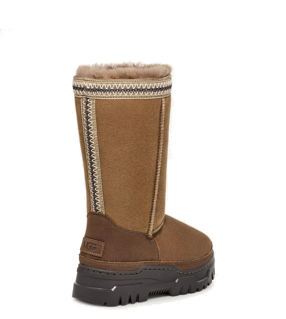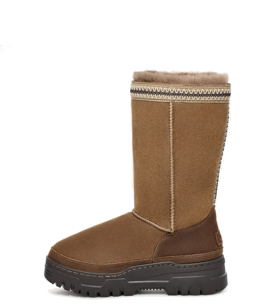 The Classic Tall TrailGazer embodies Ugg's Heritage design philosophy, focusing on comfort for outdoor adventures. The waterproof sheepskin upper features our signature UGGbraid, while the interior is lined with ultra-soft UGGplush for 360º of coziness. Built for outdoor adventures even in snowy conditions, the Classic Tall TrailGazer is rated for temperatures down to -20ºC and comes equipped with a White Spider Rubber® outsole for improved traction to keep you on your feet.