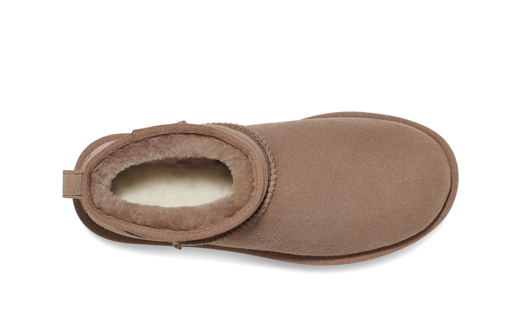 The Classic Ultra Mini boot, designed with a lower shaft, multi-versatile, easy slip on design with a lot less boot. These have the same UGGplush™ lining, and lightweight soles for better traction and cushioning for everyday wear. The suede uppers come pre-treated with a topical water repellent treatment. These boots are casual inspired, to be worn with most anything!