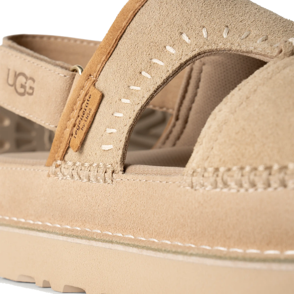 Introducing the Goldenstar Regenerate – a sandal that’s as thoughtful as it is comfortable. Crafted from suede responsibly sourced from farms dedicated to regenerative agriculture, this pair supports healthier soil, promotes biodiversity, captures carbon, and helps protect the planet for the future. Designed for sunny days and easygoing adventures, it features a contoured footbed and a lightweight outsole made from renewable sugarcane-based EVA for all-day cushion and support. Handcrafted details, premium materials, and iconic UGG® design touches give this sandal the cozy feel of the Classic Boot – reimagined for warm weather.