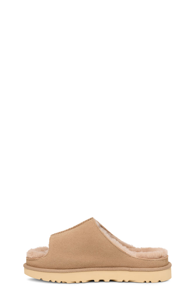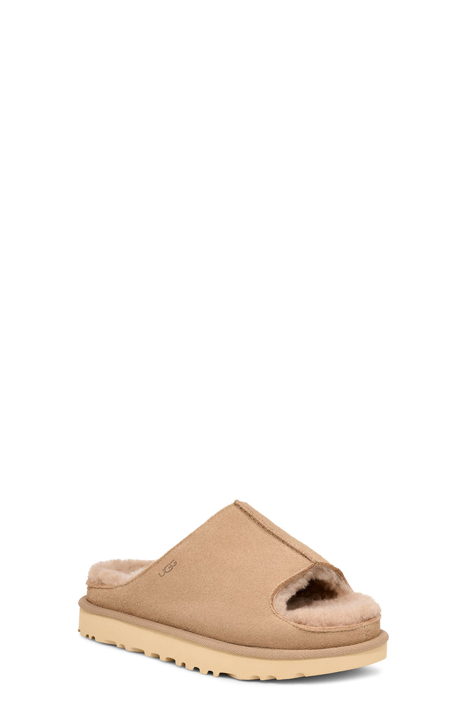 Introducing the Greenport Slide, your perfect summertime slipper for both indoors and outdoors. This lightweight, stylish addition to your collection offers the signature UGG® comfort you love, now in a more breathable design. Enjoy the natural moisture-wicking properties of the sheepskin lining and insole, or pair it with socks for an added layer of warmth. Featuring the iconic Classic Boot sole and elegant Twin Seam stitching, the Greenport Slide is UGG®'s way of embracing the sunshine.