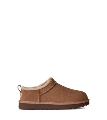 UGG's Classic Micro takes on UGG's Classic Boot with a new, low-profile design (and high-profile comfort). It has a genuine suede upper lined with mega-soft sheepskin that naturally regulates temperature, so you can wear socks — or not. The lightweight sugarcane EVA outsole delivers effortless support and adds that easy slipper feeling to every out-of-the-house venture.