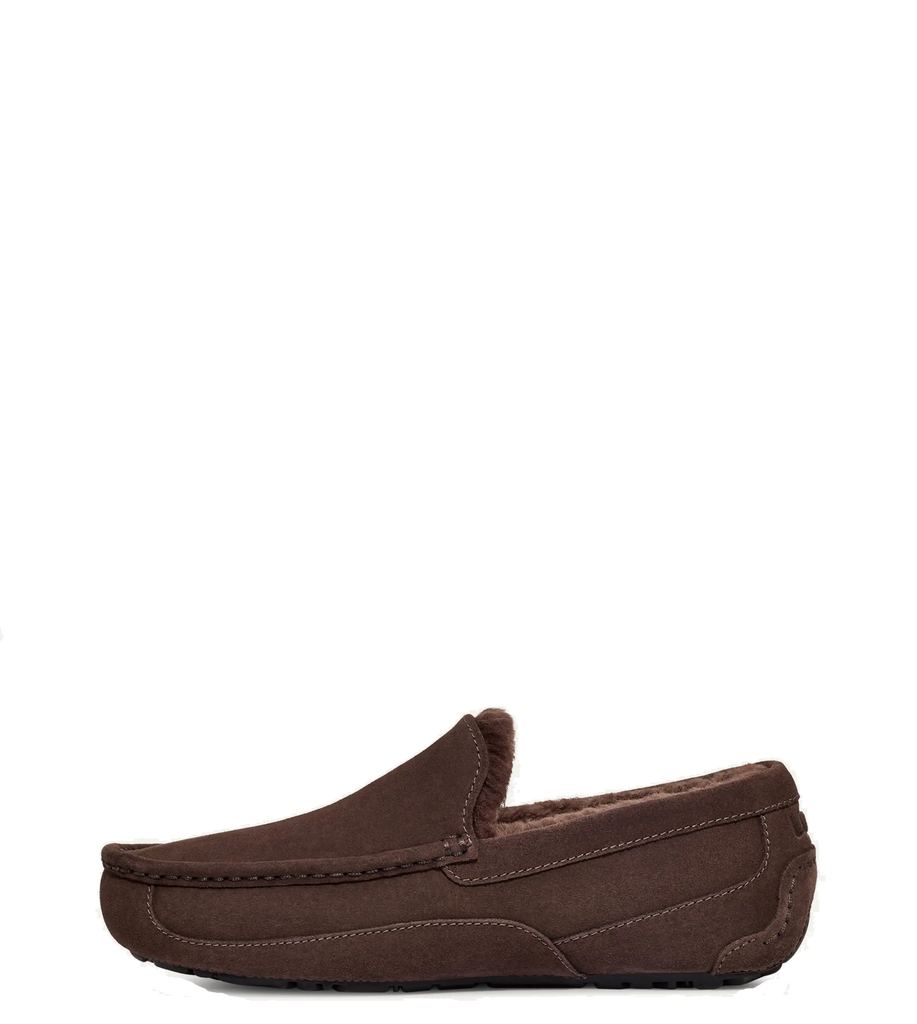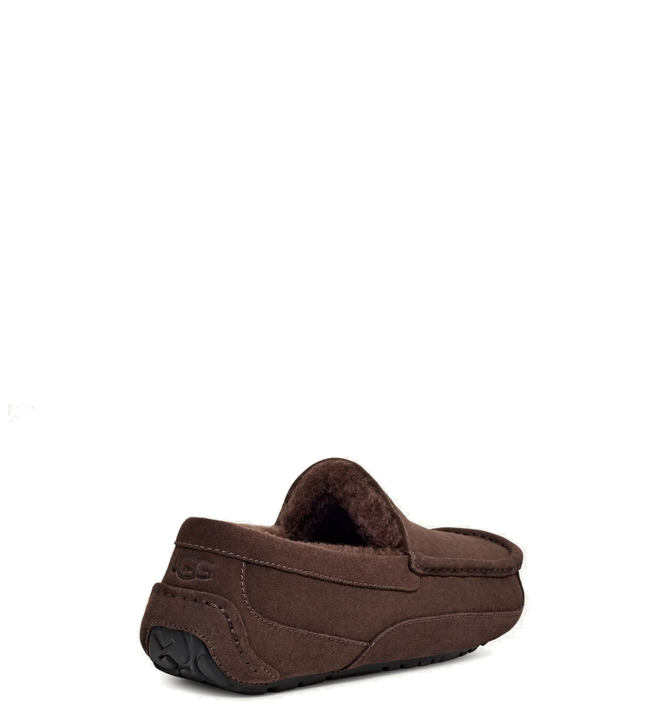This men's casual comfortable loafer stands to be our best selling slipper. Premium suede uppers and ever so soft wool lining, this slipper captures all the luxury one would desire., Be comfortable outdoors as well as indoors with their molded rubber soles.
