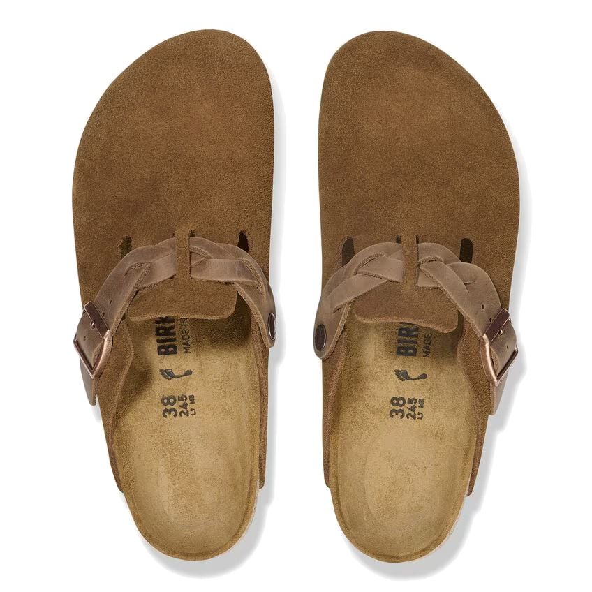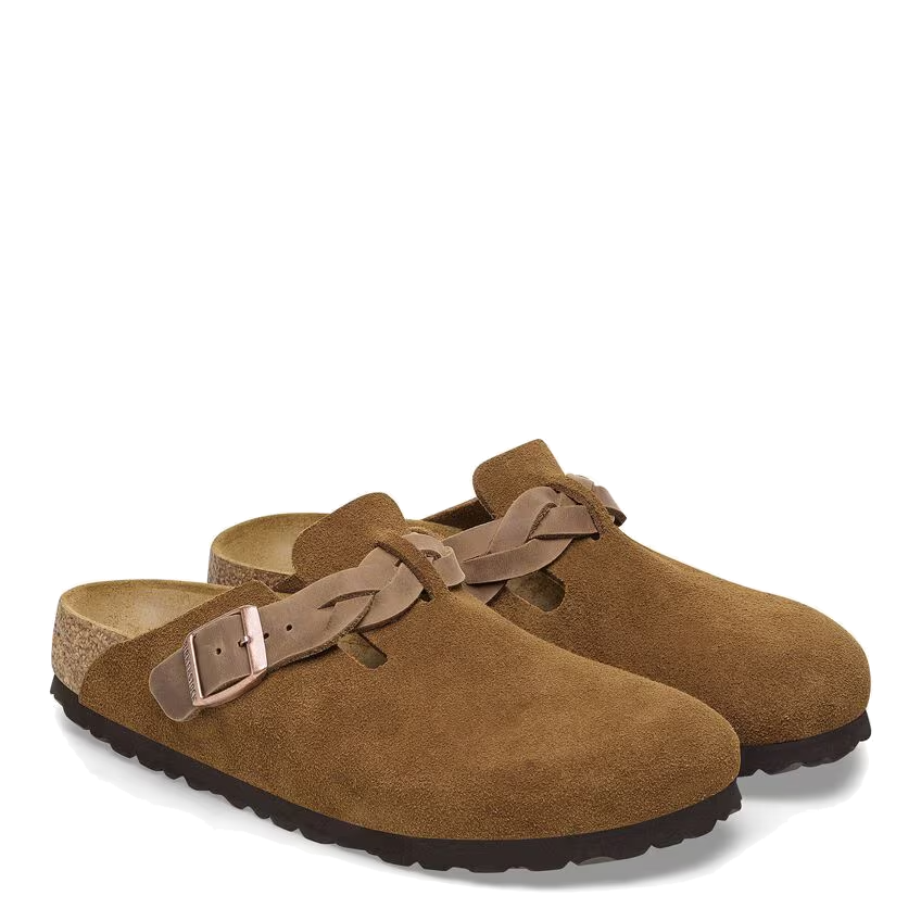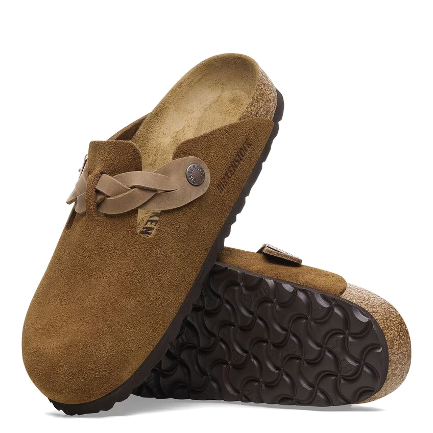 This Iconic Boston shoe with a braided twist this Birkenstock is a year round comfort fashion clog that continues to provide your feet with support and cushion. With an adjustable braided strap and an amazing cork footbed, this classic clog conforms to the shape of your foot.