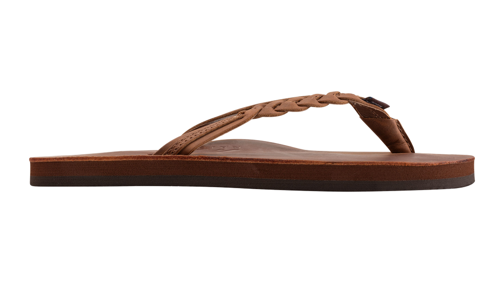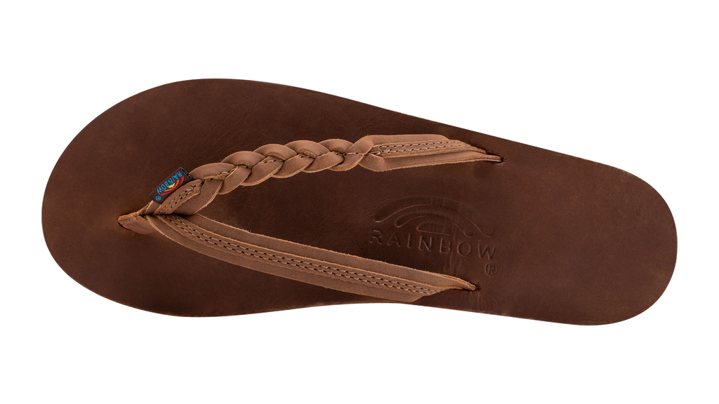 One of the most popular Rainbow Sandal styles is the Flirty Braidy. This braided strap flip has a single layer midsole with arch support, which sits on a non-slip Rainbow® bottom.