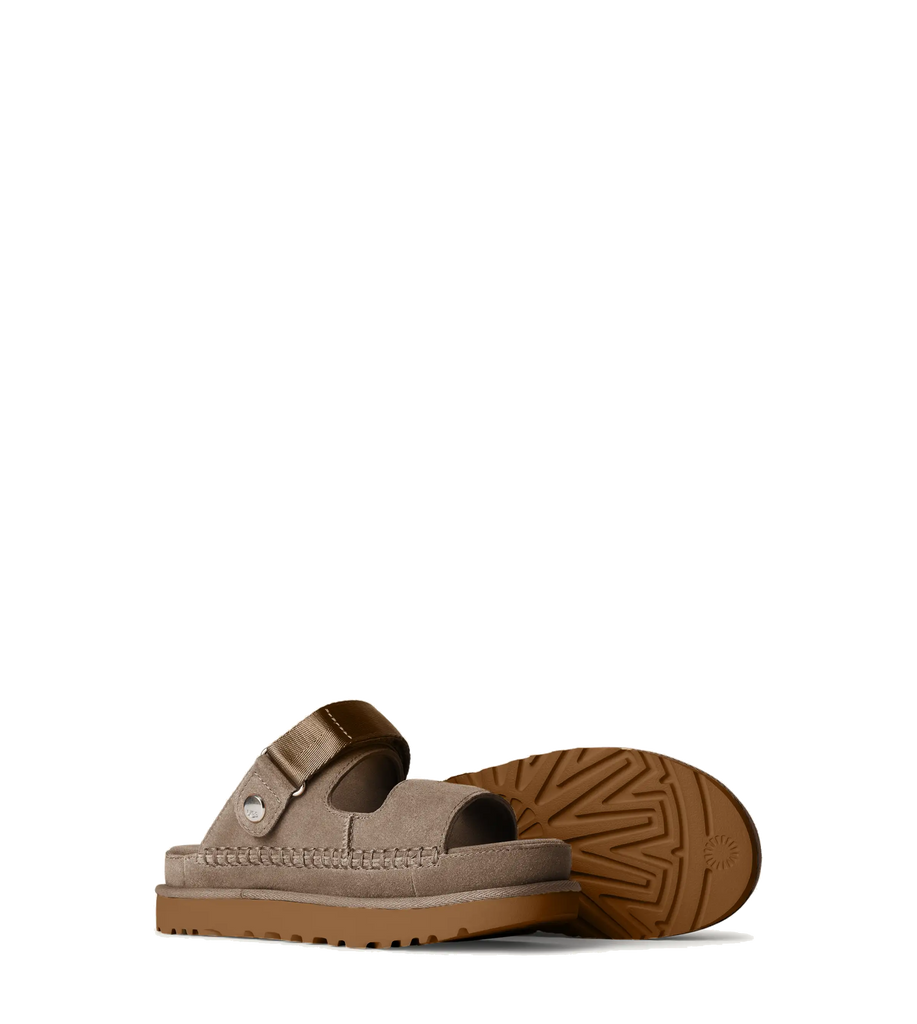 The Goldenstar Glide combines convertible comfort for all your sunny-day adventures. Featuring an adjustable heel strap that flips to the front for easy slip-on access, it's perfect for those on-the-go moments. The contoured footbed, lined with soft, recycled material and treated with anti-odor properties, keeps you feeling fresh. With a rich suede upper and a sustainable sugarcane EVA sole, the Goldenstar Glide is destined to become a favorite in your collection.