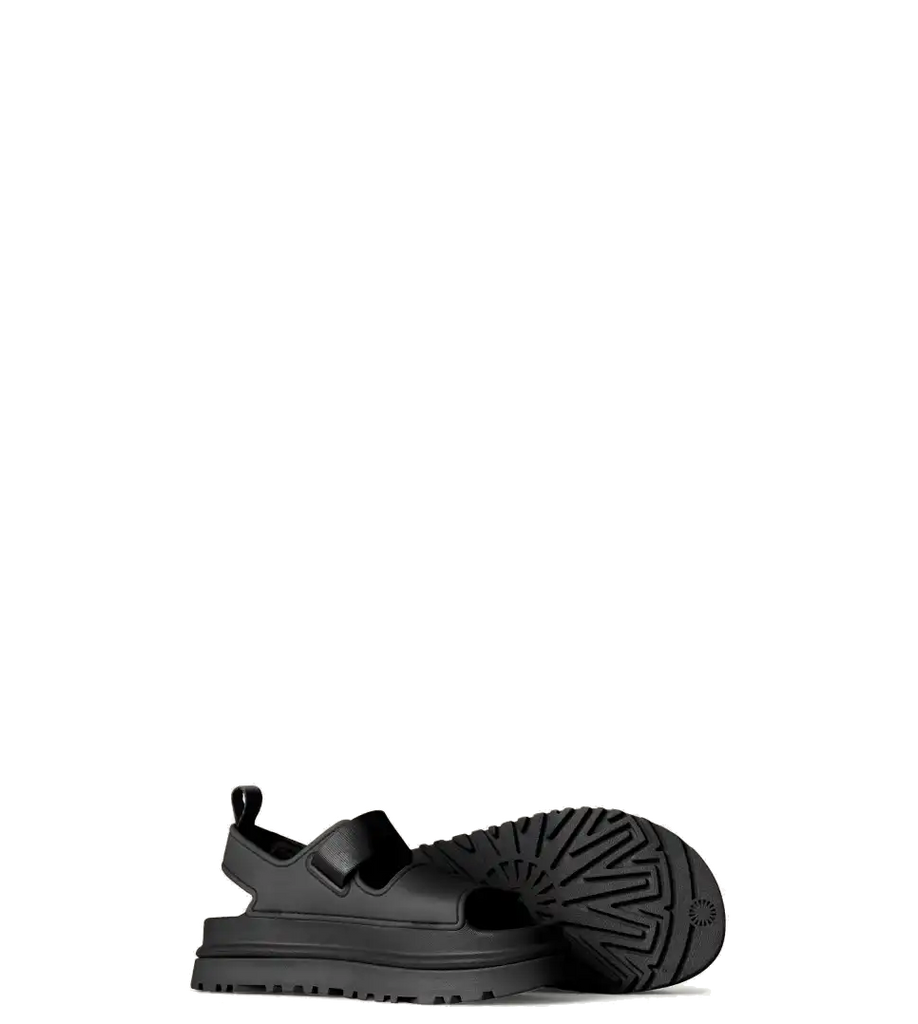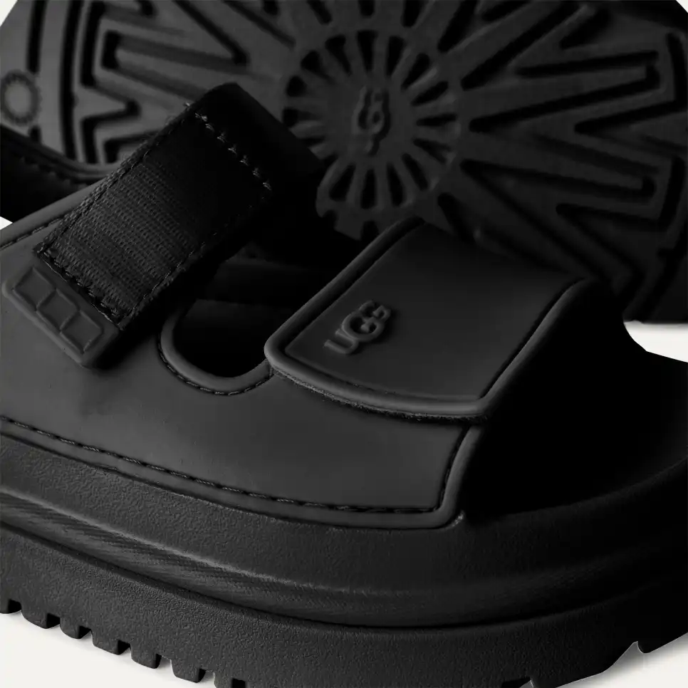 The UGG GoldenGlow Sandal is a stylish and comfortable footwear option that balances elegance and practicality. Featuring soft, plush, fully adjustable straps and a cushioned sugarcane EVA footbed, it provides a bold all-day comfort while maintaining a stylish, summery look. It's neutral tones and sleek design make it a versatile addition to any comfortable stylish outfit, perfect for warm summer outings.