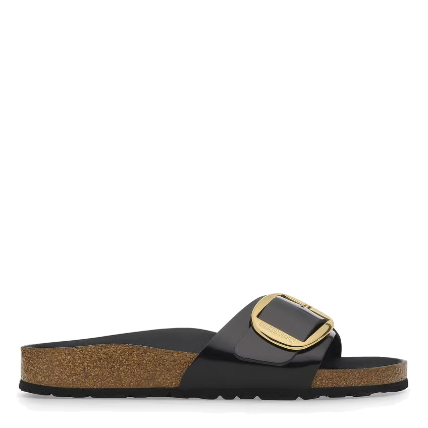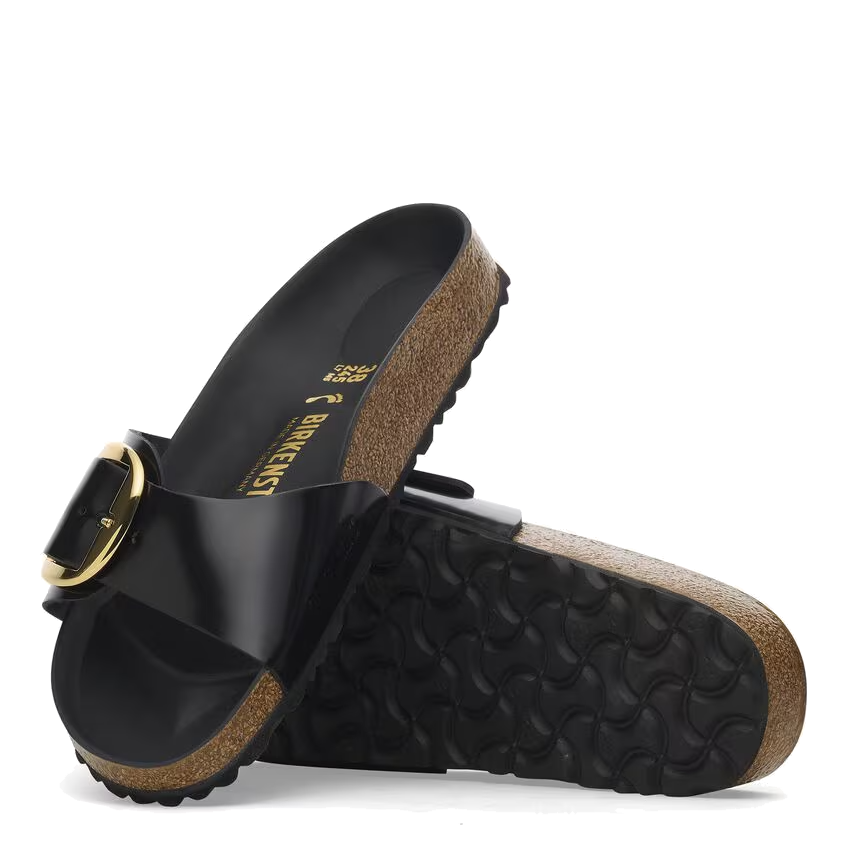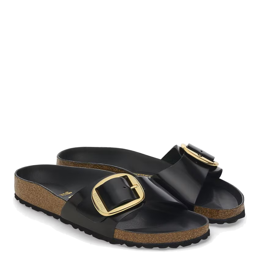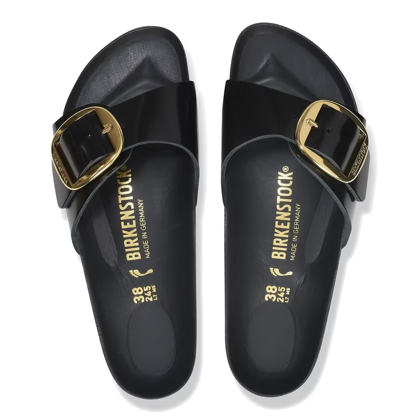 This Birkenstock Madrid is embellished with an amplified buckle. Contoured with their signature Birkenstock footbed that is wrapped in a smooth leather, this single strap sandal is a minimalist style offering Birkenstock's classic support.