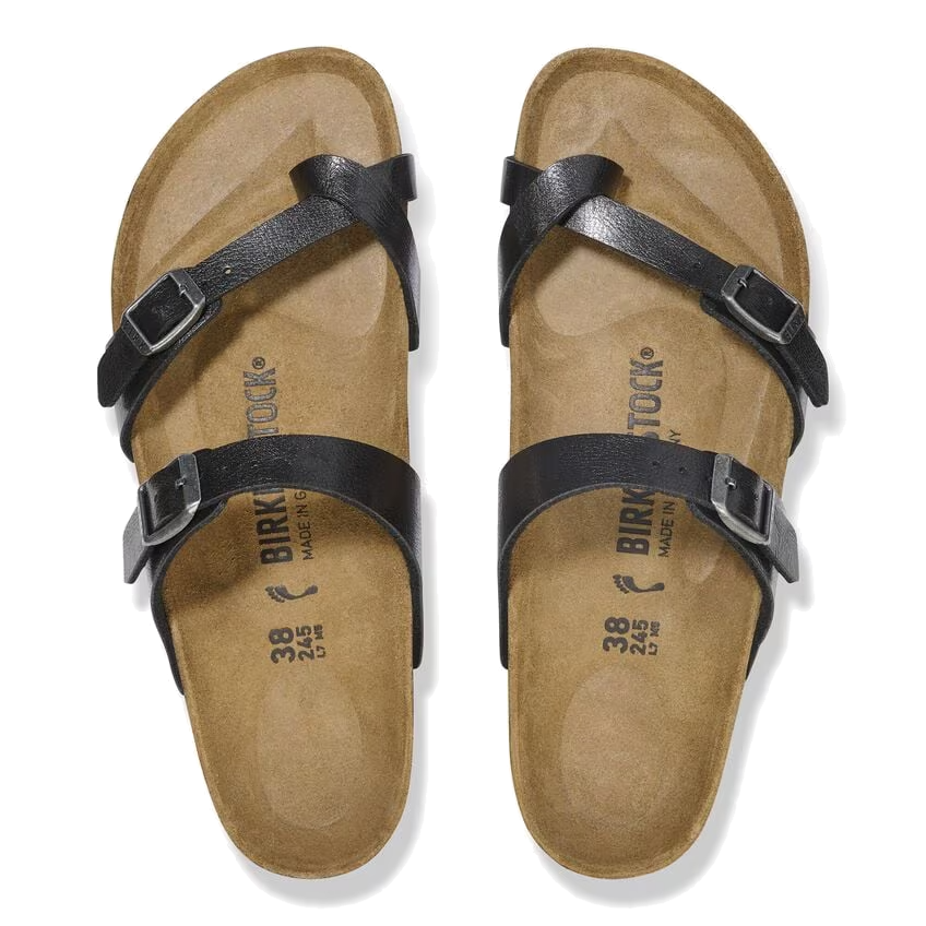 This Birkenstock Mayari thong sandal with a toe loop is a timeless comfort fashion sandal that continues to provide your feet with support. With adjustable straps and an amazing cork footbed, this classic sandal conforms to the shape of your foot.