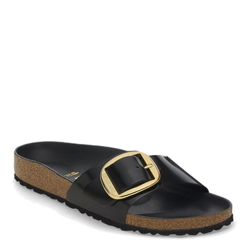 This Birkenstock Madrid is embellished with an amplified buckle. Contoured with their signature Birkenstock footbed that is wrapped in a smooth leather, this single strap sandal is a minimalist style offering Birkenstock's classic support.