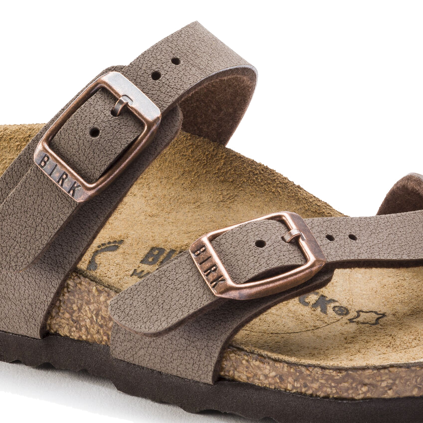 This Birkenstock Mayari thong sandal with a toe loop is a timeless comfort fashion sandal that continues to provide your feet with support. With adjustable straps and an amazing cork footbed, this classic sandal conforms to the shape of your foot.