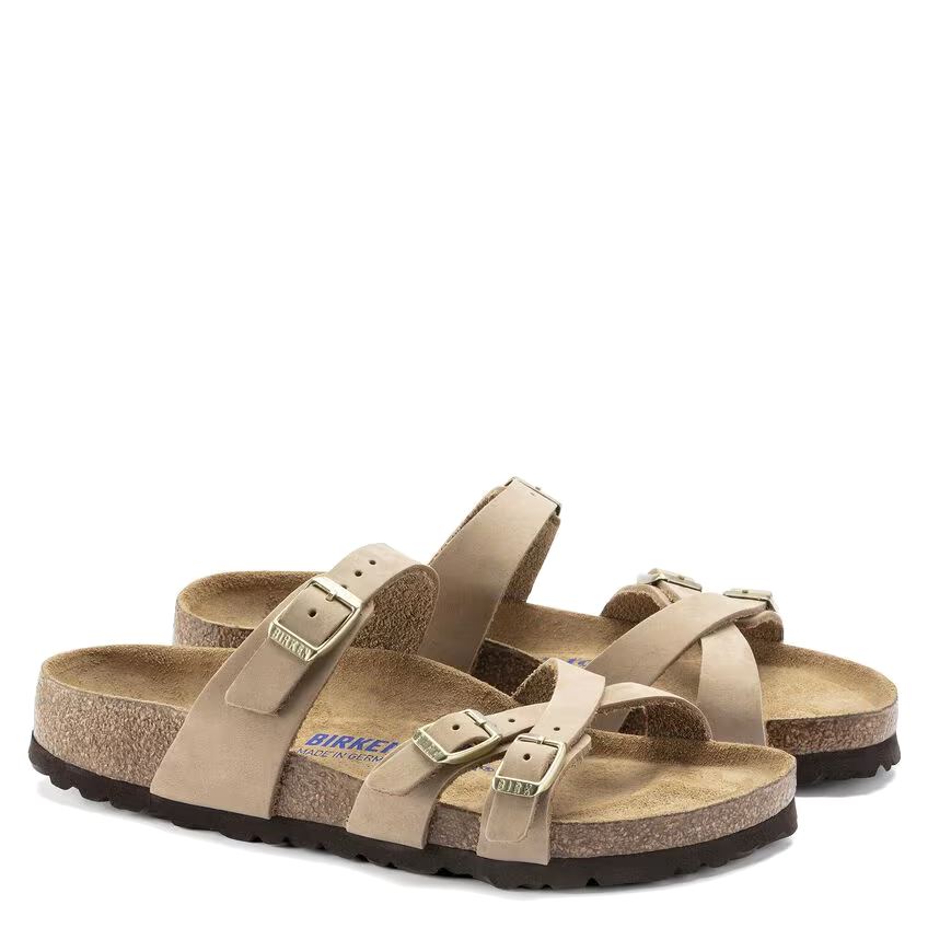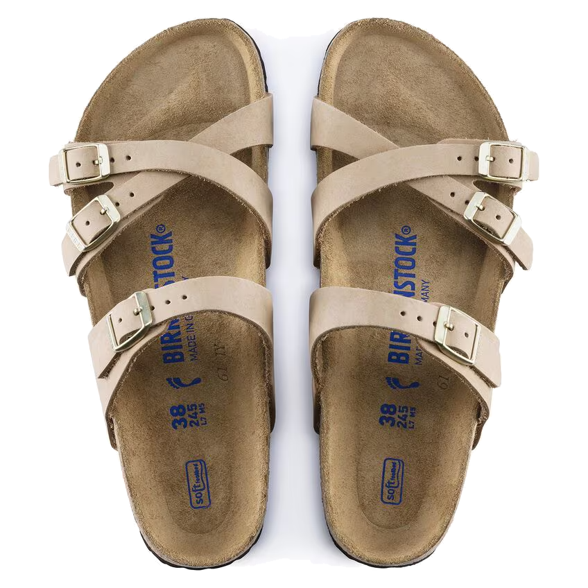 The Franca is a sophisticated design, showcasing slim, crisscrossed straps for a chic look. Combining style with practicality, it offers all-day comfort, thanks to a cushioned footbed with an extra foam layer that keeps your feet feeling fresh. The upper is made from luxurious, soft nubuck leather, adding both elegance and resilience.