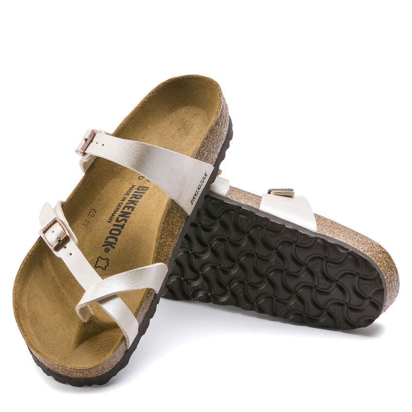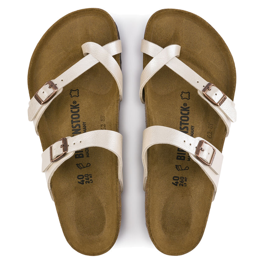 This Birkenstock Mayari thong sandal with a toe loop is a timeless comfort fashion sandal that continues to provide your feet with support. With adjustable straps and an amazing cork footbed, this classic sandal conforms to the shape of your foot.
