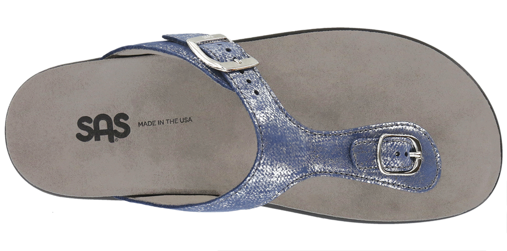 - Initial fit should allow the foot to settle naturally into the sandal's foot bed so that your foot sits inside the edge of the foot bed all the way around. Adjust the instep buckle strap to be comfortably secure over the foot. The front toe-post buckle adjusts as needed.