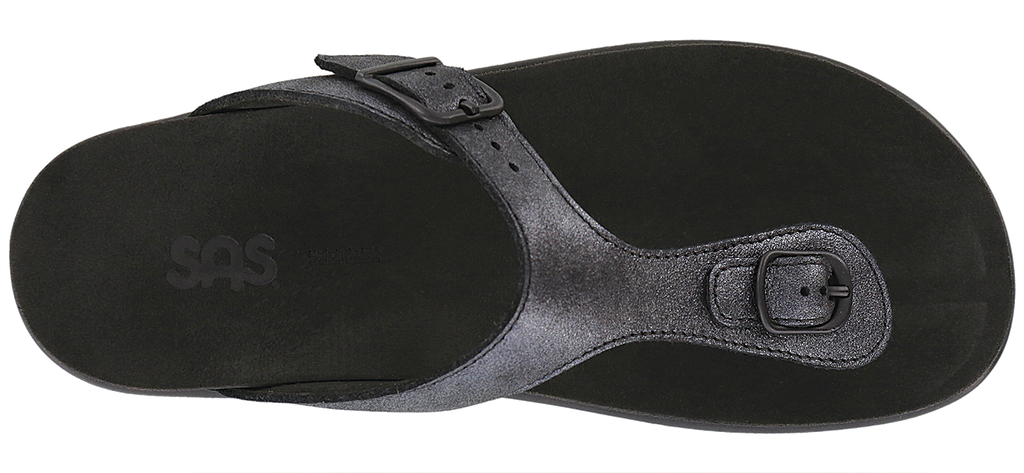 - Initial fit should allow the foot to settle naturally into the sandal's foot bed so that your foot sits inside the edge of the foot bed all the way around. Adjust the instep buckle strap to be comfortably secure over the foot. The front toe-post buckle adjusts as needed.