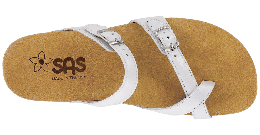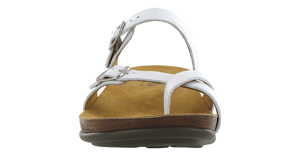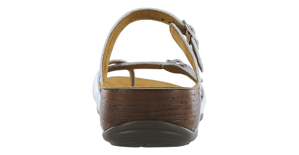 This beautiful sandal features genuine leather straps and a woodgrain patterned base. A soft, contoured insole covered in Super Suede supports the natural arch of the foot, and a flexible sole rebounds with each step. The fit of this sandal is customizable with two adjustable buckles.