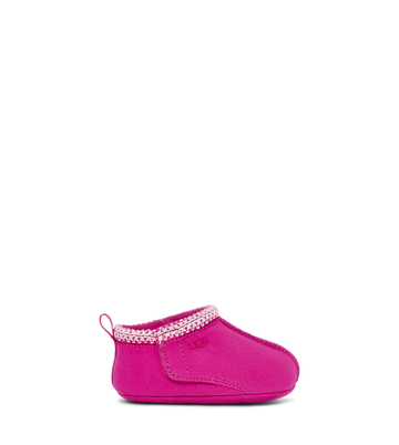 The iconic Tasman slipper now taken down to the smallest of ages. The hook and loop closure makes it an easy on and off feature. With its silky soft suedes and ultra soft UGGplush™ lining, these are surely the coziest slipper for your little one. With its grippy rubber sole, these will aide in your little one's first steps.