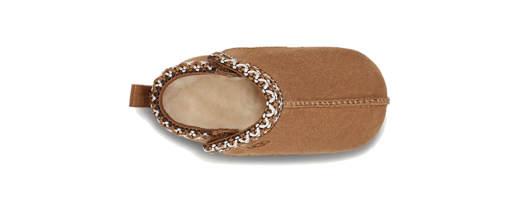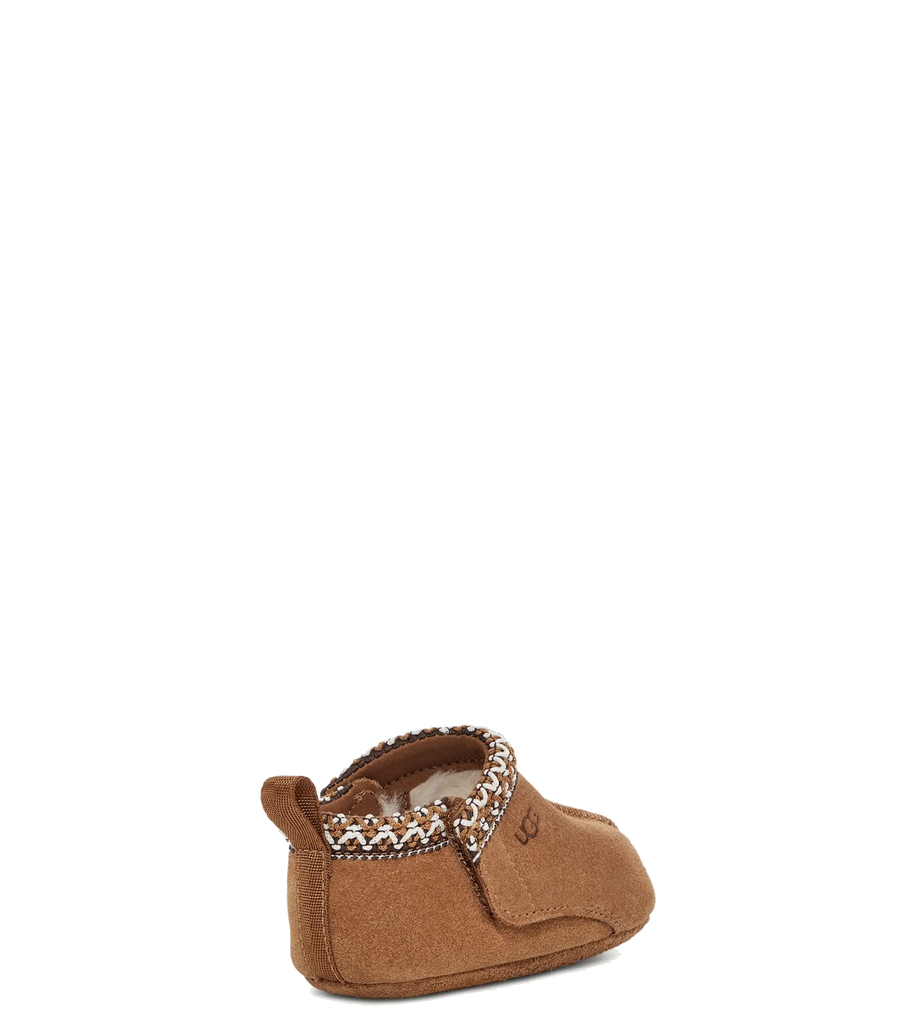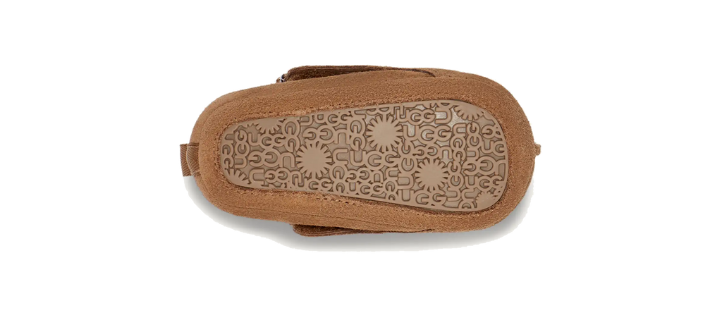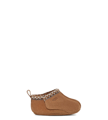 The iconic Tasman slipper now taken down to the smallest of ages. The hook and loop closure makes it an easy on and off feature. With its silky soft suedes and ultra soft UGGplush™ lining, these are surely the coziest slipper for your little one. With its grippy rubber sole, these will aide in your little one's first steps.