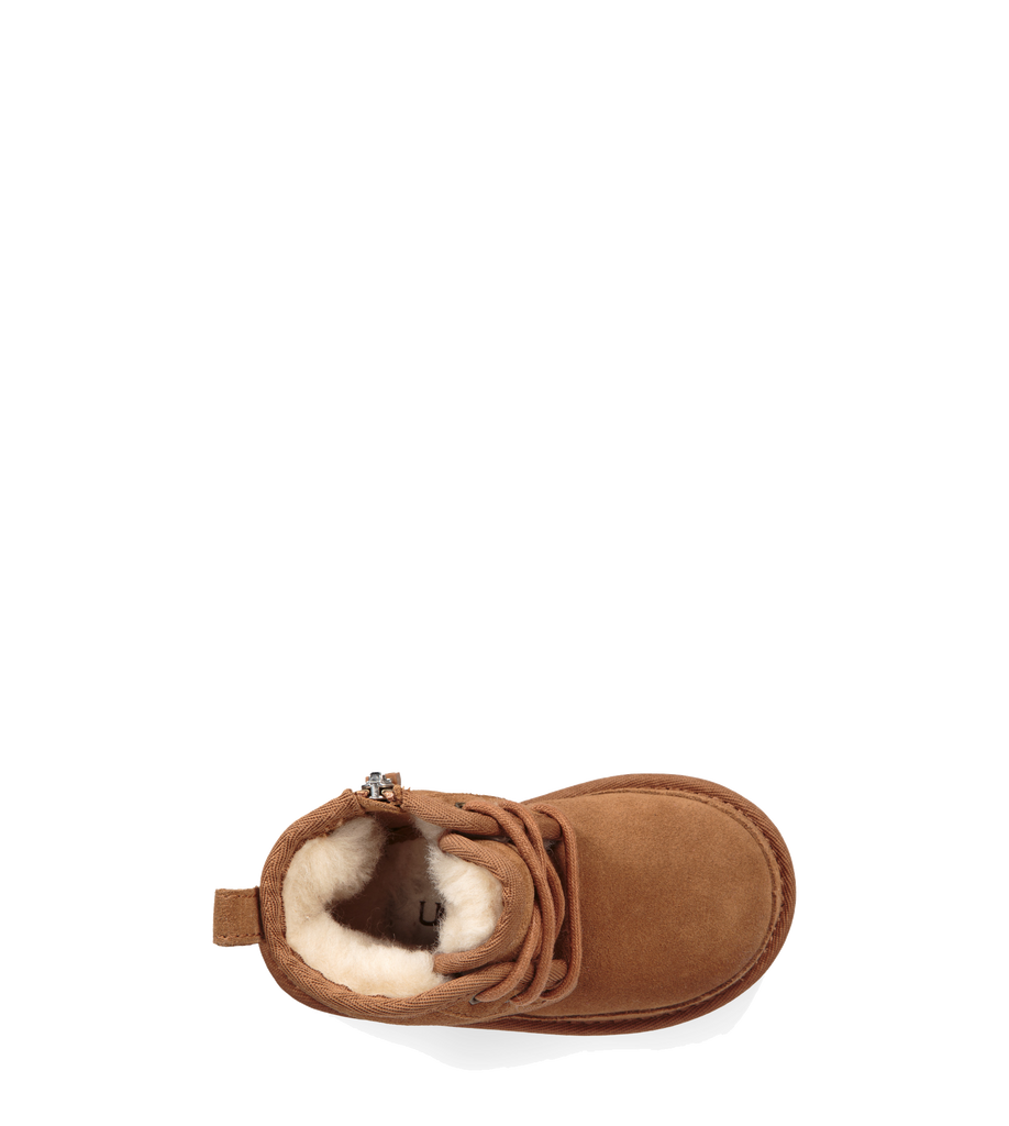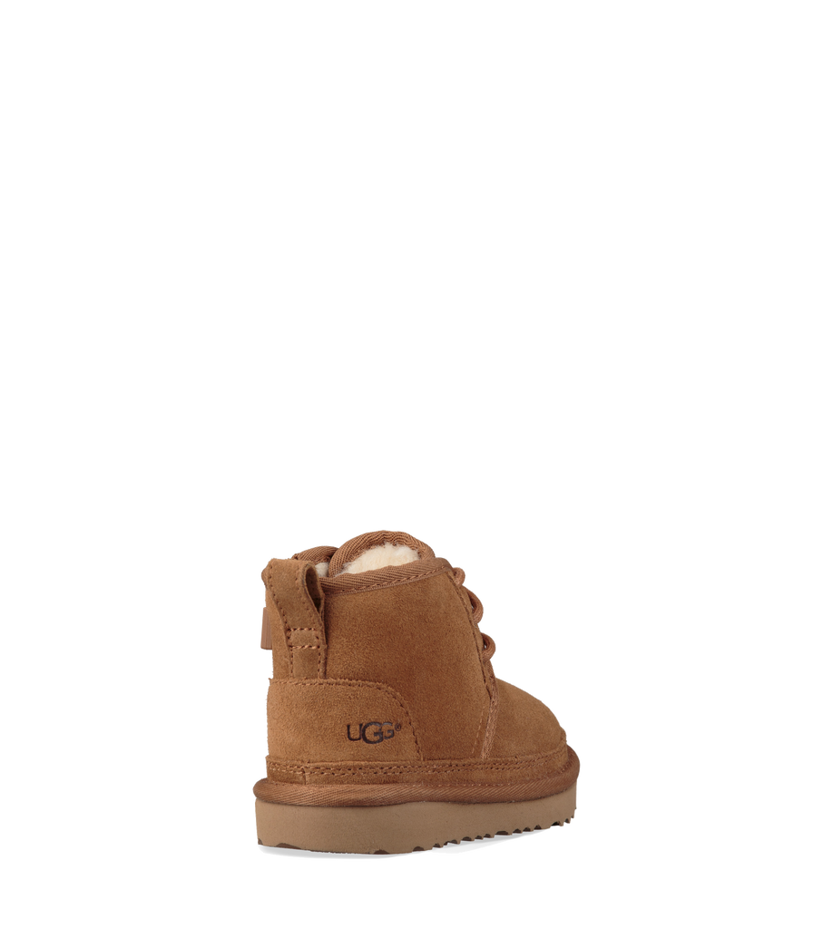 Your favorite iconic lace boot taken down to your little one's size! Keep the warmth within their feet with the ultra-soft UGGpure™ wool lining. With a rocker-bottom sole for a barefoot feel, this chukka boot has all the built in traction and durability for your little one. The most important feature is the medial zipper that will allow easy on and off without having to re-lace your child's boot each time.