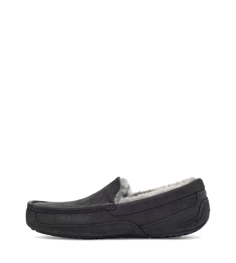 This men's casual comfortable loafer stands to be our best selling slipper. Premium oiled leather uppers and ever so soft wool lining, this slipper captures all the luxury one would desire., Dressed with jeans, these loafers resemble more than just a slipper. Be comfortable outdoors as well as indoors with their molded rubber soles.