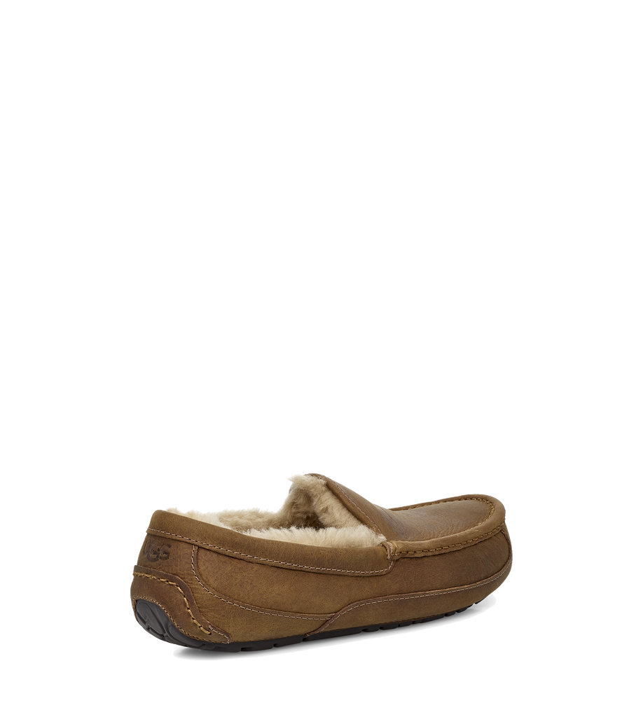 This men's casual comfortable loafer stands to be our best selling slipper. Premium leather uppers and ever so soft wool lining, this slipper captures all the luxury one would desire., Dressed with jeans, these loafers resemble more than just a slipper. Be comfortable outdoors as well as indoors with their molded rubber soles.