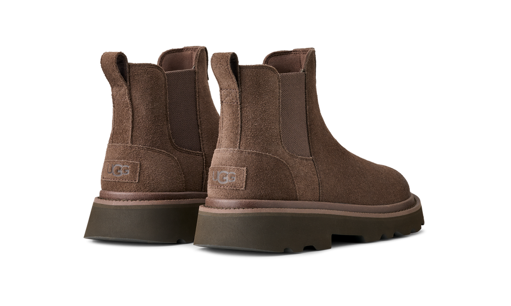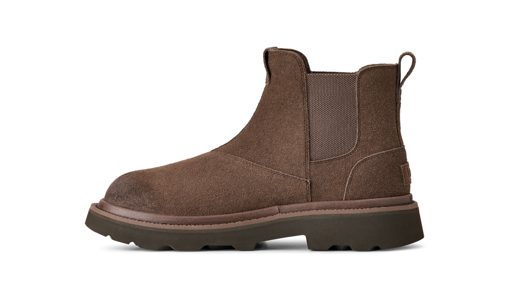 Meet the new Chelsea Lug, your go-to boot for effortless style and everyday comfort. Crafted from rich suede with burnished details, it’s got that perfectly broken-in look from day one. Stretch side panels and a pull tab make slipping in easy, while our signature UGGplush™ lining keeps every step cloud-soft. Set on a contoured sugarcane EVA footbed and a bold lugged outsole, this pair brings serious comfort and a little extra attitude to whatever you’re wearing. Plus, every pair is made in a factory that supports women through Reimagining Industry to Support Equality (RISE) — a program empowering and educating women across our supply chain.