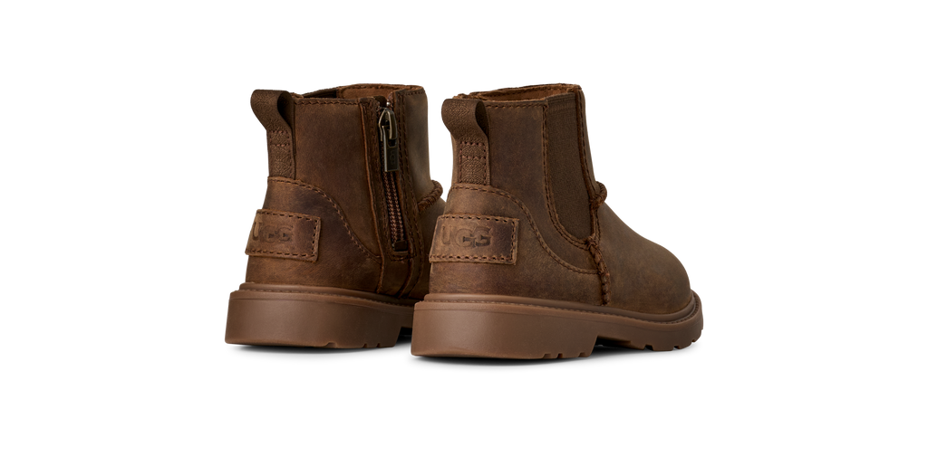 Our Perry Weather Chelsea packs big style into a small silhouette. This classic boot features waterproof, genuine leather with seam-sealed construction to keep little feet dry. Elastic gore panels and a side zipper make on-and-off a breeze for kids on the go, while Twin Seam details bring that signature UGG look to every adventure.