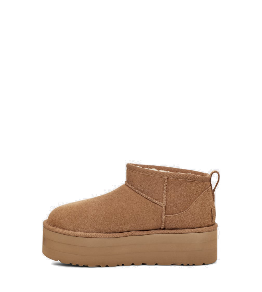 The Classic Ultra Mini Platform boot has the iconic design with its soft sheepskin but elevated at a lengthening 2" platform. The improved soles have better traction and cushioning for everyday wear. These boots offers a modern and an even bolder look to an iconic style.