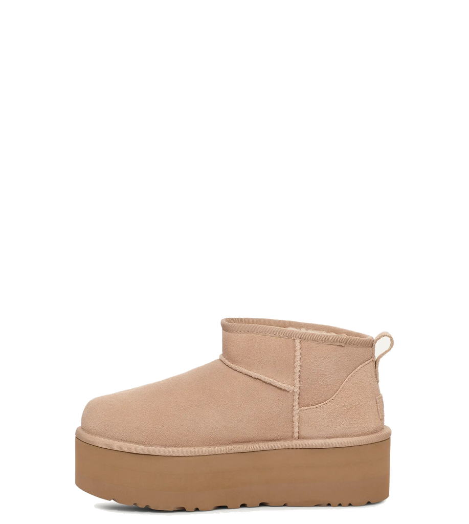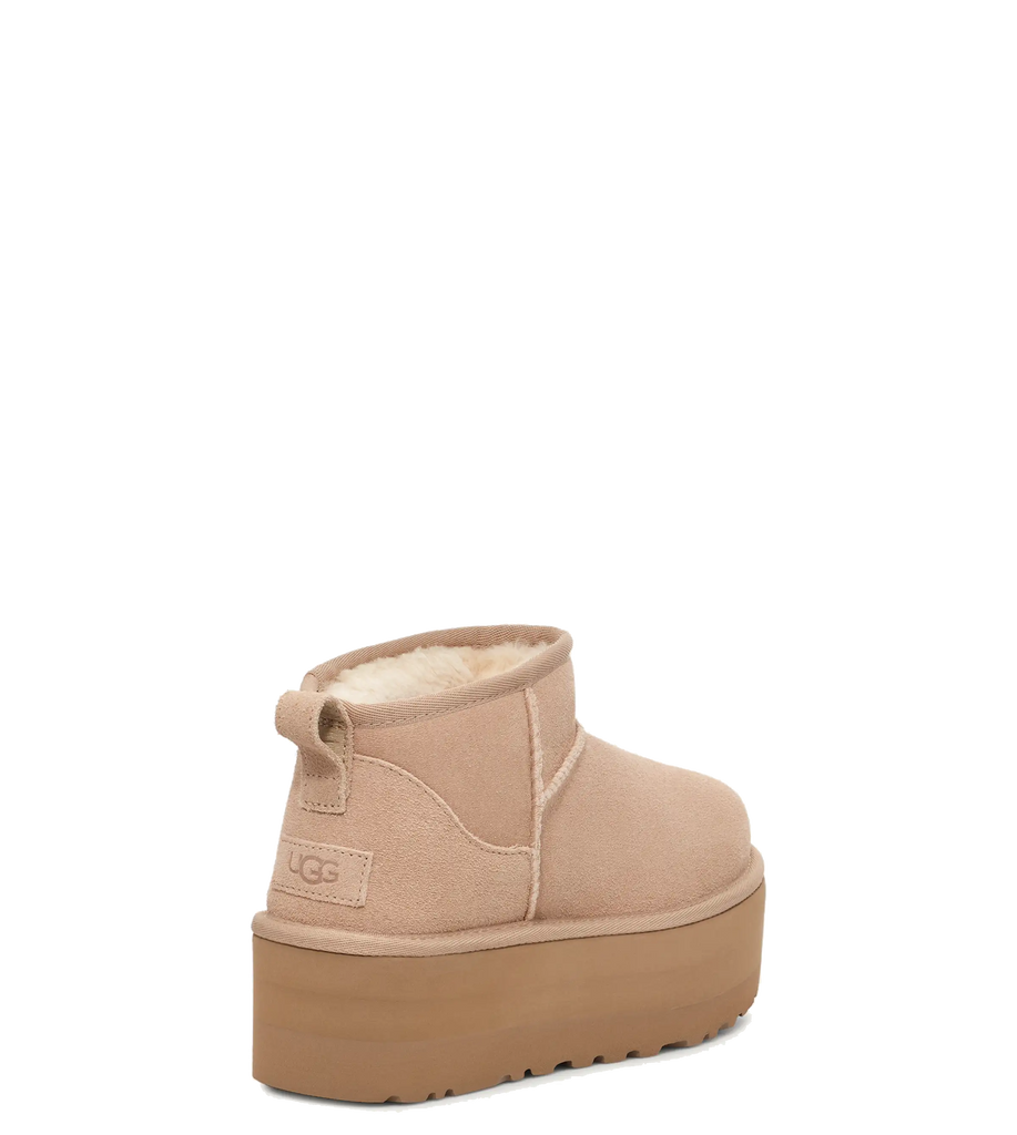 The Classic Ultra Mini Platform boot has the iconic design with its soft sheepskin but elevated at a lengthening 2" platform. The improved soles have better traction and cushioning for everyday wear. These boots offers a modern and an even bolder look to an iconic style.