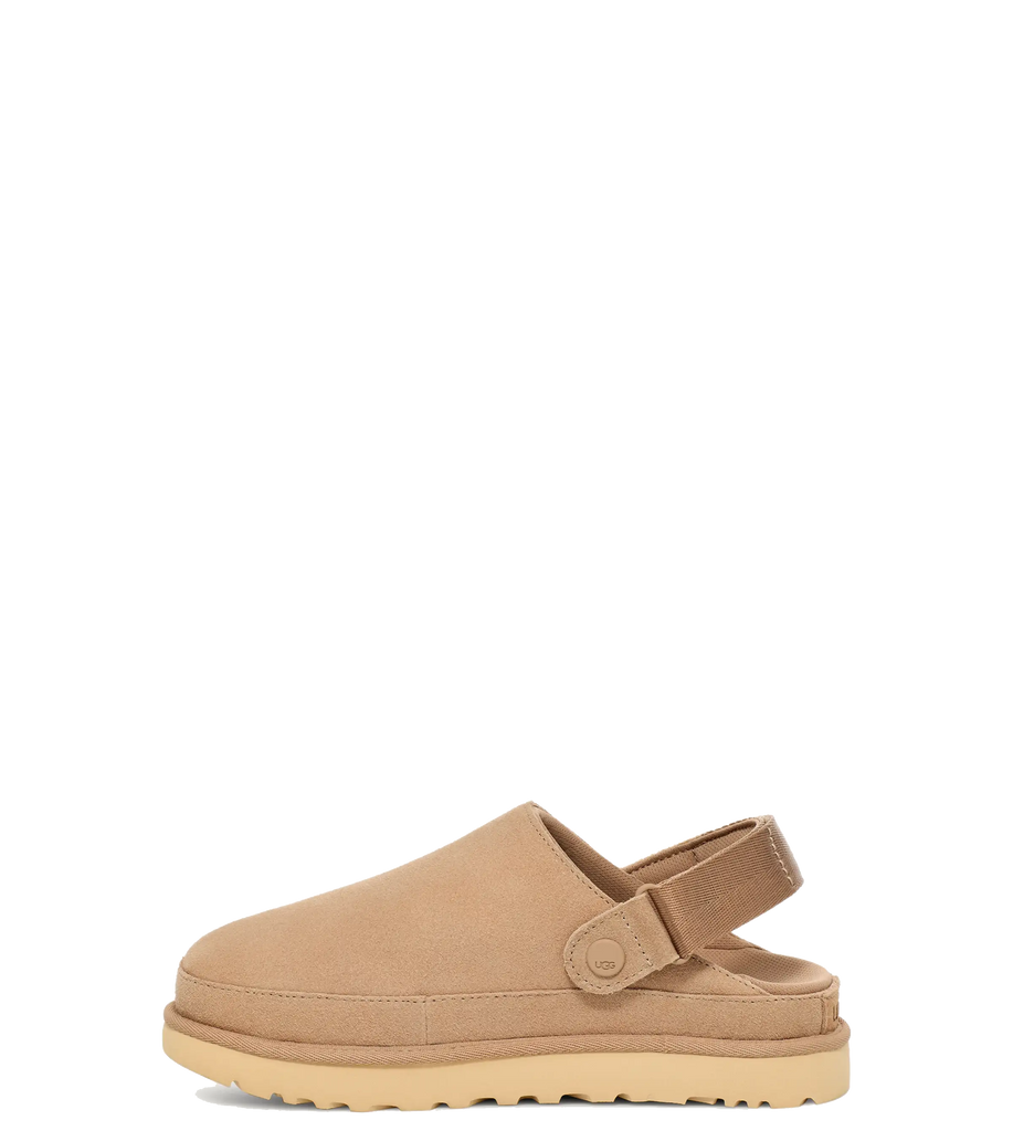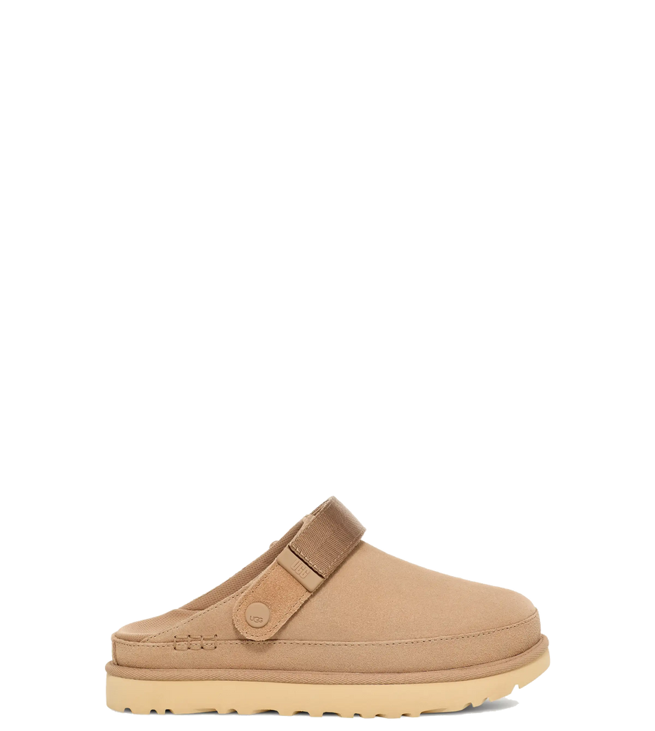This versatile suede clog brings it all. The Goldenstar Clog is a 2-1 shoe can be worn with its pulled down backstrap for easy walking, or pushed forward for the easy slip on approach. This strap is Velcro adjustable for creating the most comfortable fit.