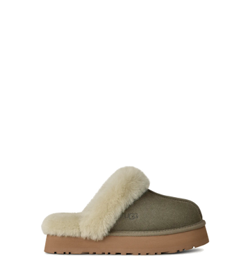 Combining designs of UGG's Coquette's and Disco silhouettes, this new clog brings new heights to one of their most popular slippers. Adding a 1" retro platform sole brings a new elevation of comfort for outdoor to all day comfort wear. These are more than just a slipper as these can be paired with jeans to a flowy midi dress. Crafted with suede uppers, this easy to slip on, Disquette features soft sheepskin with a lightweight sole.