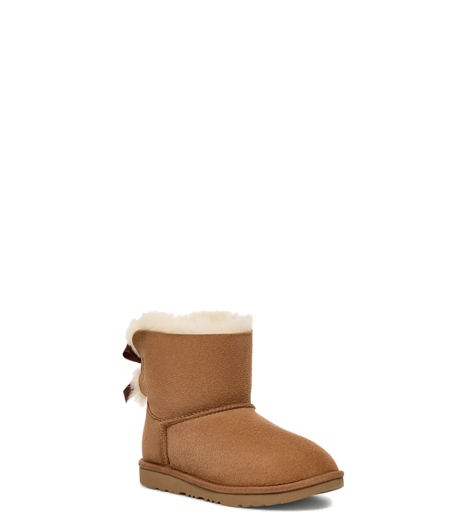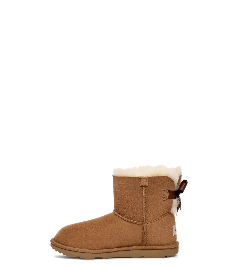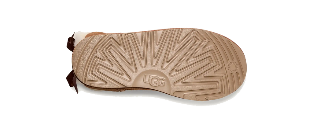 The Silky bow added to your little one's favorite boot! With soft sheepskin and ever so soft barefoot feel on their feet, it's no wonder why kids love them. The outsole is cushioned with Treadlite by UGG™, giving more comfort and a light weight sole to your child's feet. These have been pretreated with a water repellency treatment, but will need to be maintained with the UGG Water & Stain Repellent depending upon frequency of wear.