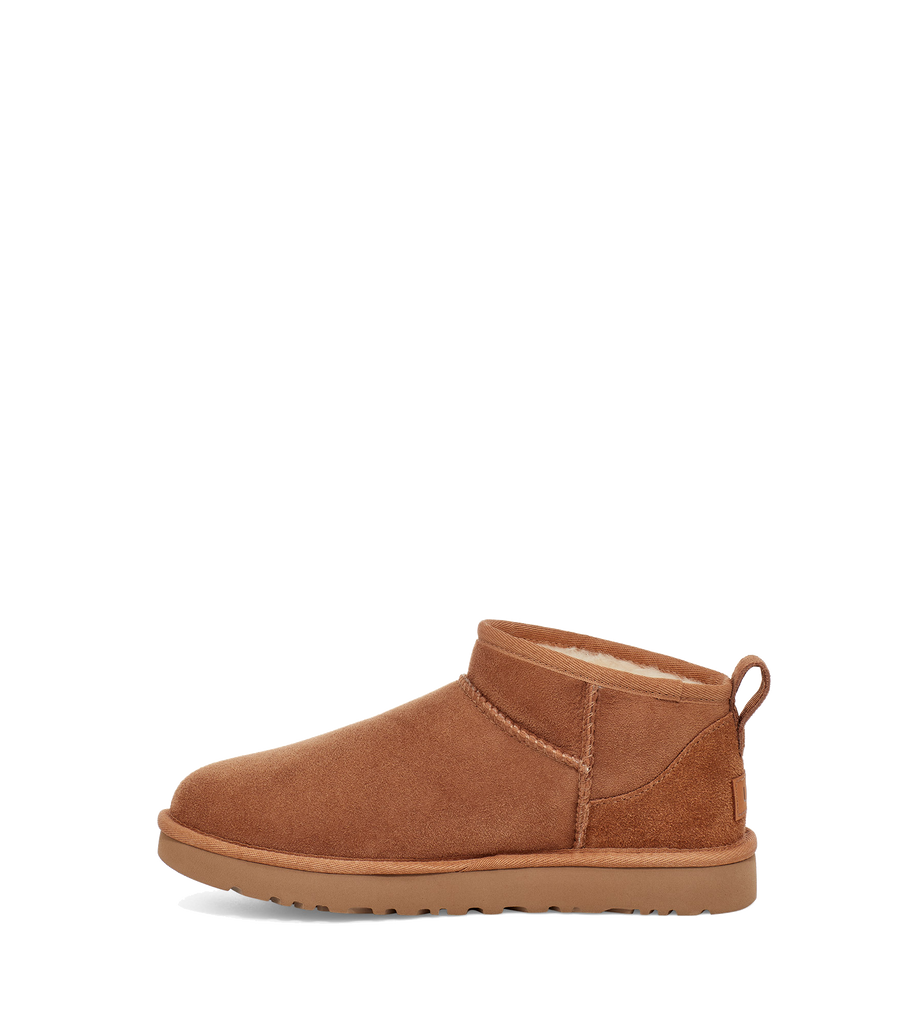The Classic Ultra Mini boot, designed with a lower shaft, multi-versatile, easy slip on design with a lot less boot. These have the same UGGplush™ lining, and lightweight soles for better traction and cushioning for everyday wear. The suede uppers come pre-treated with a topical water repellent treatment. These boots are casual inspired, to be worn with most anything!
