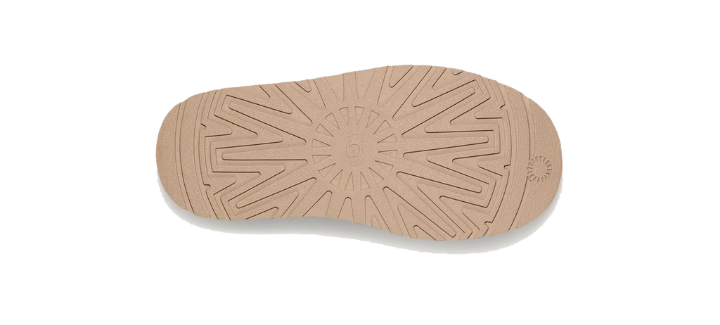 The outsole of this product is either a SugarSole™ outsole, which is a responsible compound using sugarcane foam that allows us to reduce dependency on fossil fuels by replacing petroleum-based ethylene, or a Treadlite by UGG™ outsole.