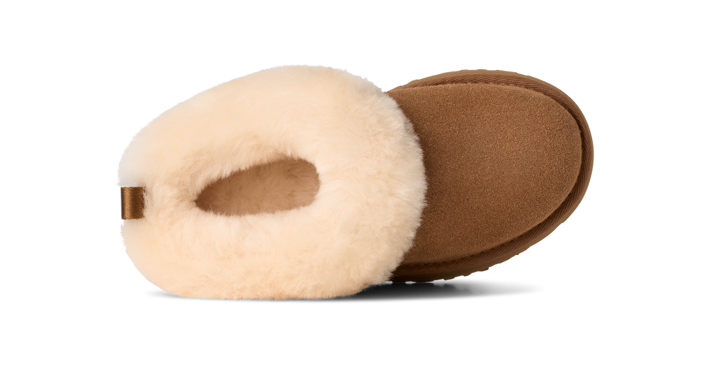If they love the Tazz but crave even more signature UGG® coziness, the Tazzelle is their perfect match. This ultra-plush indoor–outdoor slipper pairs genuine suede with a lightweight 1" sugarcane-EVA platform for soft, springy comfort. Inside, luxe sheepskin lines the footbed and flows into the fluffy fixed cuff—cozy enough to wear with socks or all on its own. And for the cutest coordinated moment, you can grab a matching pair from our Women’s collection. This style is made in a factory that supports women throughout our supply chain through Reimagining Industry to Support Equality (RISE)—a collaborative initiative that partners with brands like ours to empower and educate women in the workplace. I