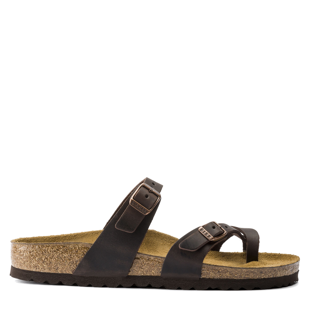 This Birkenstock Mayari thong sandal with a toe loop is a timeless comfort fashion sandal that continues to provide your feet with support. With adjustable straps and an amazing cork footbed, this classic sandal conforms to the shape of your foot.